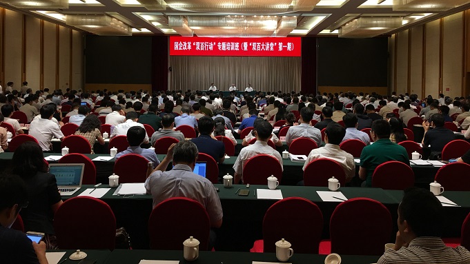8月21-22日(ri),由國(guo)(guo)務院國(guo)(guo)有企(qi)(qi)業改(gai)革領導小組(zu)辦(ban)(ban)公室舉辦(ban)(ban)的國(guo)(guo)企(qi)(qi)改(gai)革“雙百行動(dong)(dong)”專題(ti)培訓(xun)班(ban)(ban)(暨“雙百大講堂”第一期)在北京(jing)舉辦(ban)(ban),納入國(guo)(guo)企(qi)(qi)改(gai)革“雙百行動(dong)(dong)”的中央企(qi)(qi)業集團公司及所屬(shu)“雙百企(qi)(qi)業”有關同志,共(gong)計320余人參(can)加了培訓(xun)。國(guo)(guo)務院國(guo)(guo)資委副秘書長彭(peng)華(hua)崗同志參(can)加開(kai)班(ban)(ban)式并(bing)作(zuo)開(kai)班(ban)(ban)動(dong)(dong)員。