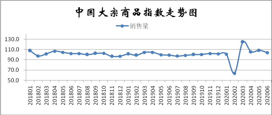 2020年6月份,大(da)宗(zong)(zong)商品(pin)銷(xiao)(xiao)售(shou)指(zhi)(zhi)數為(wei)104.1%,較上月回落4.5個百分(fen)點,顯示(shi)國(guo)內大(da)宗(zong)(zong)商品(pin)市(shi)場銷(xiao)(xiao)售(shou)增(zeng)速(su)(su)出(chu)(chu)(chu)現(xian)(xian)減緩(huan)。從各(ge)主要商品(pin)來(lai)看,本(ben)月鋼鐵(tie)(tie)銷(xiao)(xiao)售(shou)量和(he)(he)上月相(xiang)比(bi)有(you)所減少,成品(pin)油、有(you)色金(jin)屬、化(hua)工和(he)(he)汽車(che)銷(xiao)(xiao)售(shou)量增(zeng)速(su)(su)出(chu)(chu)(chu)現(xian)(xian)減緩(huan),但(dan)鐵(tie)(tie)礦石(shi)和(he)(he)煤炭銷(xiao)(xiao)售(shou)量分(fen)別受鋼鐵(tie)(tie)生產增(zeng)加和(he)(he)高溫(wen)提升備貨(huo)需(xu)(xu)求(qiu)的(de)影響,繼續呈現(xian)(xian)增(zeng)速(su)(su)加快的(de)態勢。本(ben)月銷(xiao)(xiao)售(shou)指(zhi)(zhi)數增(zeng)速(su)(su)減緩(huan),我們認為(wei)一(yi)方面是(shi)因為(wei)前(qian)期基數較高,特(te)別是(shi)本(ben)月鋼鐵(tie)(tie)銷(xiao)(xiao)售(shou)量出(chu)(chu)(chu)現(xian)(xian)減少;另一(yi)方面也是(shi)因為(wei)6月份國(guo)內大(da)宗(zong)(zong)商品(pin)需(xu)(xu)求(qiu)整體轉入淡(dan)季,特(te)別是(shi)6月下(xia)半月以來(lai),隨著全(quan)國(guo)多地出(chu)(chu)(chu)現(xian)(xian)高溫(wen),而南方出(chu)(chu)(chu)現(xian)(xian)洪澇災(zai)害,明顯抑制(zhi)需(xu)(xu)求(qiu)。