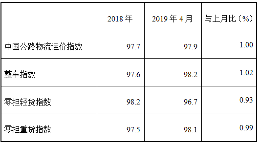 表(biao)1 2019年4月(yue)中國公路(lu)物流(liu)運(yun)價指(zhi)數表(biao)