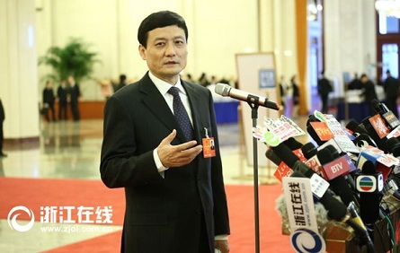 肖亞慶接受記者采訪( 浙江在線記者 王堅穎攝)