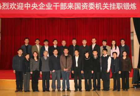 11月27日上午,國資委人事局組織召開了2009-2010年第四批中央企業干部到國資委機關掛職鍛煉歡迎會。來自兵器工業等中央企業的13名同志從今天起分別到法規局、產權局、改革局、綜合局、宣傳局、群工局、外事局、機關黨委、紀委監察局開始為期一年的掛職鍛煉。