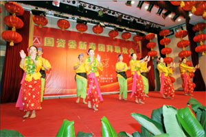 團拜會(hui)上還(huan)舉(ju)行了文藝(yi)聯(lian)歡。文藝(yi)聯(lian)歡由(you)2009年(nian)新錄公(gong)務員表演的(de)(de)舞蹈《西班(ban)牙斗(dou)牛風(feng)情(qing)》和機(ji)關(guan)各廳局(ju)自撰的(de)(de)春聯(lian)展(zhan)示(shi)拉開序幕,在《舉(ju)杯吧,朋友》的(de)(de)歡快(kuai)(kuai)樂曲中結束。整(zheng)個文藝(yi)聯(lian)歡以機(ji)關(guan)廳局(ju)結合本單(dan)位業(ye)務工作撰寫的(de)(de)春聯(lian)展(zhan)示(shi)為主(zhu)線,從不同的(de)(de)側面回(hui)顧過去(qu)一年(nian)在黨中央(yang)(yang)國(guo)務院(yuan)的(de)(de)堅強領導下(xia),國(guo)資(zi)委(wei)與(yu)中央(yang)(yang)企業(ye)同舟共濟應對國(guo)際金融(rong)危機(ji),保持國(guo)民經(jing)濟平穩較快(kuai)(kuai)發(fa)展(zhan)取得的(de)(de)可喜(xi)成(cheng)績;謳歌(ge)在建設中國(guo)特(te)色社會(hui)主(zhu)義(yi)偉大進(jin)(jin)程中,國(guo)資(zi)委(wei)直屬機(ji)關(guan)干(gan)部(bu)職工和中央(yang)(yang)企業(ye)所表現出來的(de)(de)時代精神;抒發(fa)直屬機(ji)關(guan)廣(guang)大干(gan)部(bu)職工堅持解(jie)放思想、堅持改革(ge)開放,為推進(jin)(jin)國(guo)有經(jing)濟發(fa)展(zhan)、建設社會(hui)主(zhu)義(yi)和諧社會(hui)和促(cu)進(jin)(jin)本單(dan)位全面建設貢獻智慧和力(li)量的(de)(de)誠摯感情(qing);表達了國(guo)資(zi)委(wei)機(ji)關(guan)廣(guang)大干(gan)部(bu)職工,堅定理(li)想信(xin)念,為推進(jin)(jin)國(guo)有資(zi)產監督管(guan)理(li)體制(zhi)改革(ge)和中央(yang)(yang)企業(ye)改革(ge)發(fa)展(zhan)努力(li)奮斗(dou)的(de)(de)堅強決(jue)心和堅定信(xin)心。整(zheng)個演出高潮(chao)迭起,異彩紛呈,令(ling)人目不暇接。文藝(yi)演出中還(huan)進(jin)(jin)行了抽獎(jiang)活動。