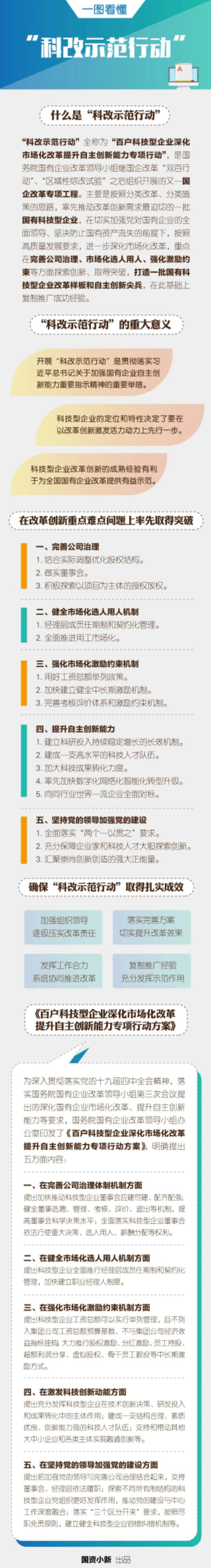 “科改(gai)(gai)示范行動”是繼國(guo)企(qi)(qi)改(gai)(gai)革(ge)“雙百行動”、“區域性(xing)綜改(gai)(gai)試驗”后的又一國(guo)企(qi)(qi)改(gai)(gai)革(ge)專項(xiang)工程(cheng),共選(xuan)取了200余戶改(gai)(gai)革(ge)創新(xin)緊迫性(xing)較強的國(guo)有(you)科技型(xing)企(qi)(qi)業,在切(qie)實加強黨對國(guo)有(you)企(qi)(qi)業的全面領導、堅決防止國(guo)有(you)資產(chan)流(liu)失(shi)的前提下,按(an)照高(gao)質量發展要求,進(jin)一步推動深化(hua)(hua)(hua)市(shi)場化(hua)(hua)(hua)改(gai)(gai)革(ge),重點在完善(shan)公司治理、市(shi)場化(hua)(hua)(hua)選(xuan)人用人、強化(hua)(hua)(hua)激勵約束等方面探索(suo)創新(xin)、取得突破,打造一批國(guo)有(you)科技型(xing)企(qi)(qi)業改(gai)(gai)革(ge)樣板(ban)和自主創新(xin)尖(jian)兵,在此基礎上復制推廣成功(gong)經驗。