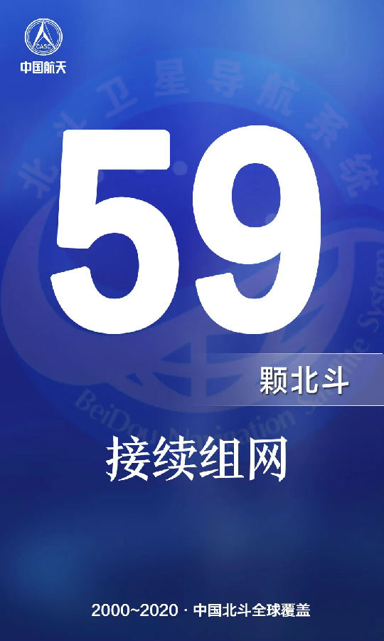 2020年6月(yue)23日,中國北斗(dou)衛(wei)星導航系統全球組網階段收官星發射圓滿成(cheng)功(gong)。20年來,中國航天科技集(ji)團有(you)限公(gong)司成(cheng)功(gong)發射了59顆北斗(dou)衛(wei)星(4顆北斗(dou)試驗導航衛(wei)星、55顆北斗(dou)導航衛(wei)星),在太(tai)空布(bu)局中國導航星座。