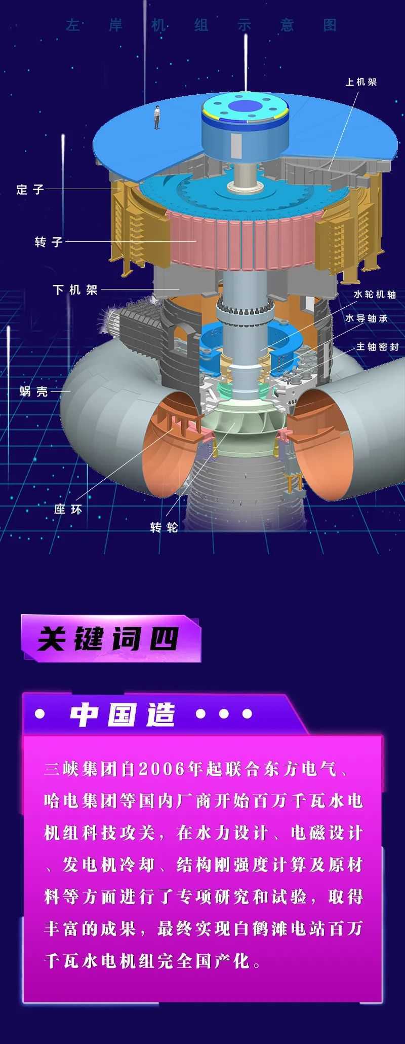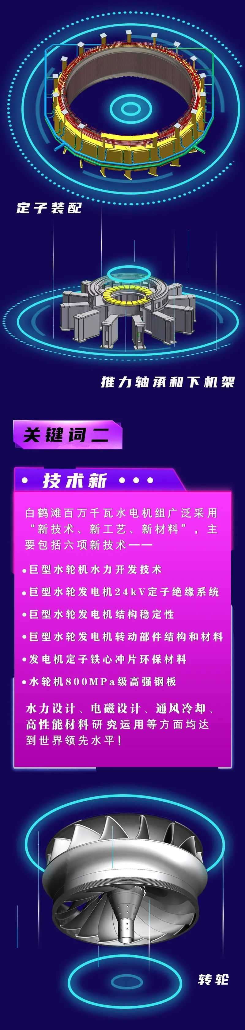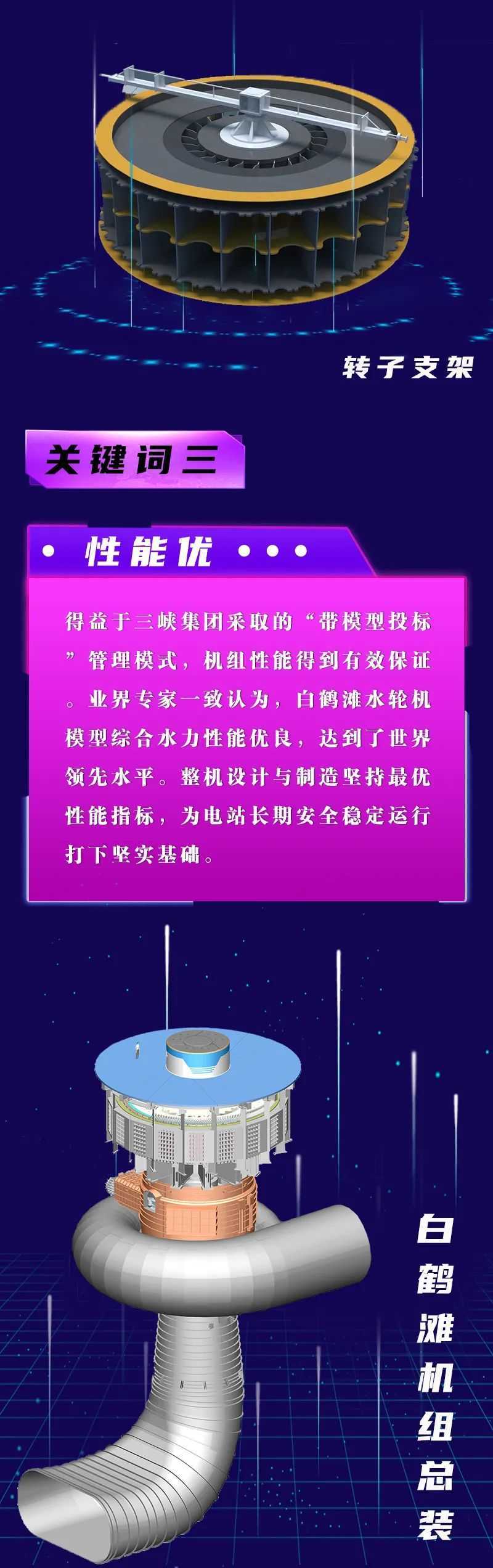 轉(zhuan)子(zi)(zi)是水(shui)輪發電機(ji)組(zu)的重要轉(zhuan)動部件(jian)。機(ji)組(zu)運行(xing)時,轉(zhuan)子(zi)(zi)轉(zhuan)動產生(sheng)旋轉(zhuan)磁場(chang),切割定子(zi)(zi)繞組(zu),從而產生(sheng)感應(ying)電勢、輸出電能(neng)。白鶴灘水(shui)電站左岸機(ji)組(zu)轉(zhuan)子(zi)(zi)外(wai)圓直徑約(yue)16.2米,最大高度約(yue)4.1米,起吊(diao)重量達2100噸,是機(ji)組(zu)安(an)裝過程中重量最大的核心部件(jian)。