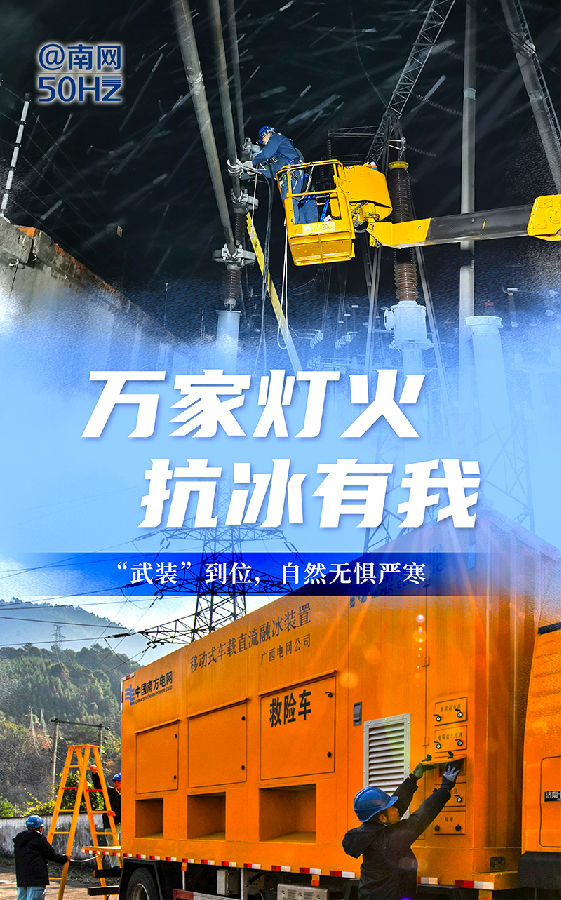 近日,南方電網(wang)公(gong)司啟動低溫雨(yu)雪冰凍(dong)災害Ⅳ級應急響(xiang)應,全力應對本(ben)輪寒(han)潮天(tian)氣,保障大電網(wang)安全穩(wen)定(ding)運(yun)行和電力有序供應。通過(guo)一組圖帶你見證(zheng)冰天(tian)雪地中(zhong)守(shou)護萬家燈(deng)火的(de)南方電網(wang)人(ren)。