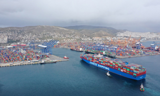 中国大型集装箱货轮抵达希腊...