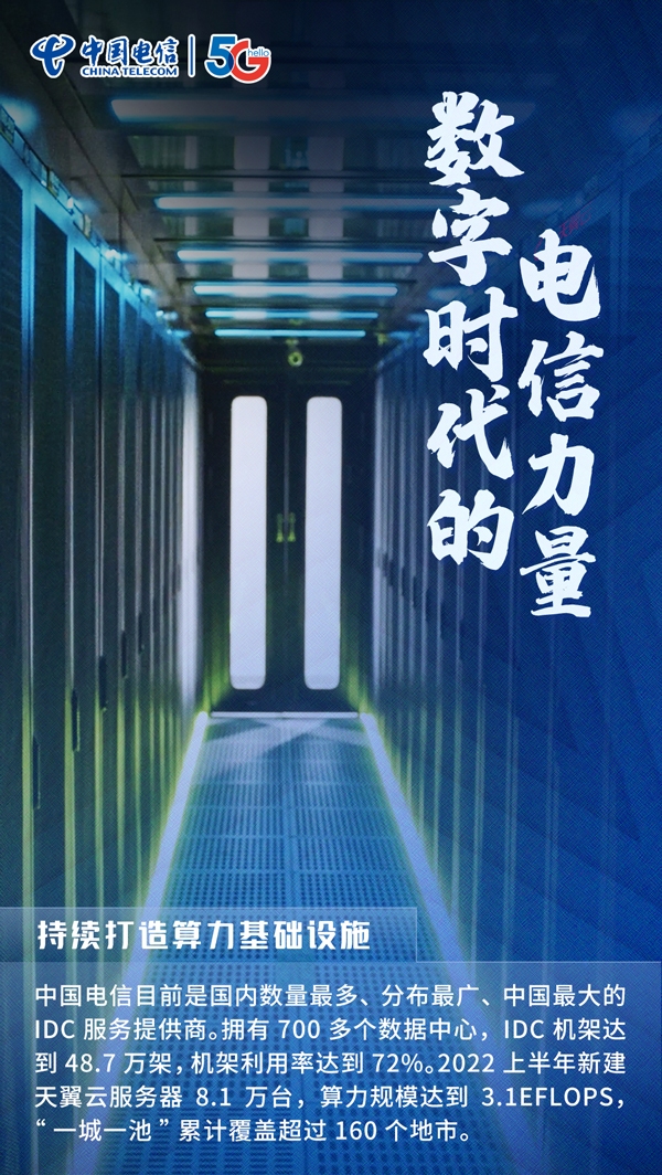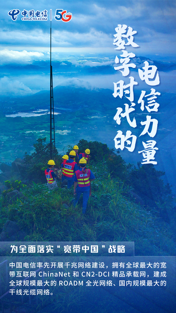 近年來(lai),中國(guo)電信勇擔時(shi)代(dai)使命,全力(li)做強做優做大,以科技創新推(tui)動高(gao)質量發展,為數(shu)字經濟發展注(zhu)入新動能(neng),讓(rang)用戶(hu)盡(jin)情享受智能(neng)信息(xi)新生活,奮力(li)譜寫(xie)新時(shi)代(dai)高(gao)質量發展新篇(pian)章。今天,一起感受下數(shu)字時(shi)代(dai)的(de)電信力(li)量。