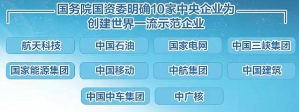 比如,中央企(qi)業的(de)兼并重組、信息公開等試點(dian)已全面完成。航天科技(ji)、中建(jian)集團等10家中央企(qi)業入選創建(jian)世界(jie)一(yi)流(liu)示范企(qi)業試點(dian)。