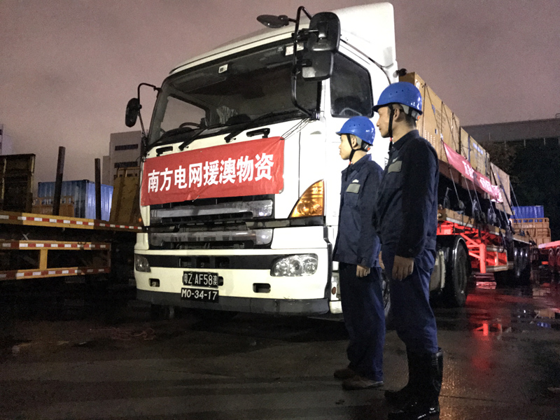 2017年8月27日深夜,南方電網援澳物資抵達珠海。8月28日凌晨,援澳物資順利抵達澳門。林丹丹 攝