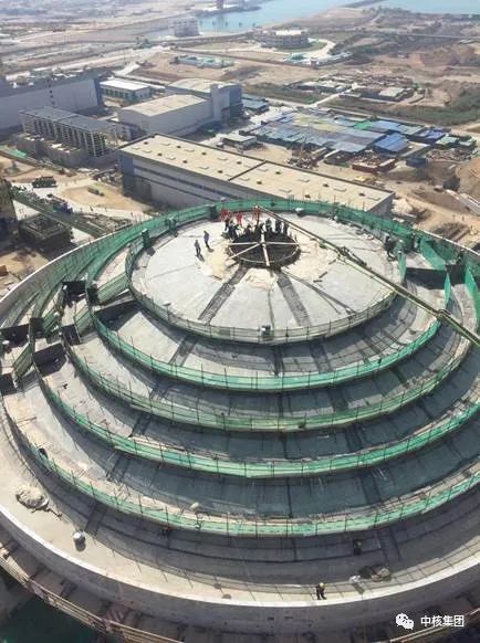 卡(ka)拉奇核電K2核島擁有雙層(ceng)安全(quan)殼(ke),外(wai)(wai)層(ceng)安全(quan)殼(ke)分(fen)為(wei)筒(tong)體結(jie)構(gou)(gou)和穹(qiong)(qiong)頂結(jie)構(gou)(gou)兩部(bu)分(fen),外(wai)(wai)穹(qiong)(qiong)頂結(jie)構(gou)(gou)承接(jie)筒(tong)體結(jie)構(gou)(gou)標準(zhun)段(duan),厚度1.8米,結(jie)構(gou)(gou)跨度大,鋼筋密(mi)集,混凝(ning)土(tu)(tu)量約為(wei)6600立方米,整(zheng)體為(wei)扁(bian)殼(ke)形鋼筋混凝(ning)土(tu)(tu)結(jie)構(gou)(gou),內(nei)襯為(wei)K-2/K-3項(xiang)目創(chuang)新的(de)(de)永久性整(zheng)體鋼制(zhi)模(mo)板。在(zai)保證安全(quan)和質(zhi)量的(de)(de)前提下,現場各單位高(gao)度重視、緊(jin)密(mi)協作,克服了(le)工期緊(jin)、任務重、工程量大等困難,順利完(wan)成了(le)“華龍(long)一號(hao)”海(hai)外(wai)(wai)首堆外(wai)(wai)穹(qiong)(qiong)頂封頂結(jie)構(gou)(gou)施(shi)工,為(wei)后續安裝調試(shi)創(chuang)造了(le)良好條(tiao)件,為(wei)“華龍(long)一號(hao)”海(hai)外(wai)(wai)首堆早(zao)日投產(chan)提供了(le)堅實的(de)(de)基(ji)礎。