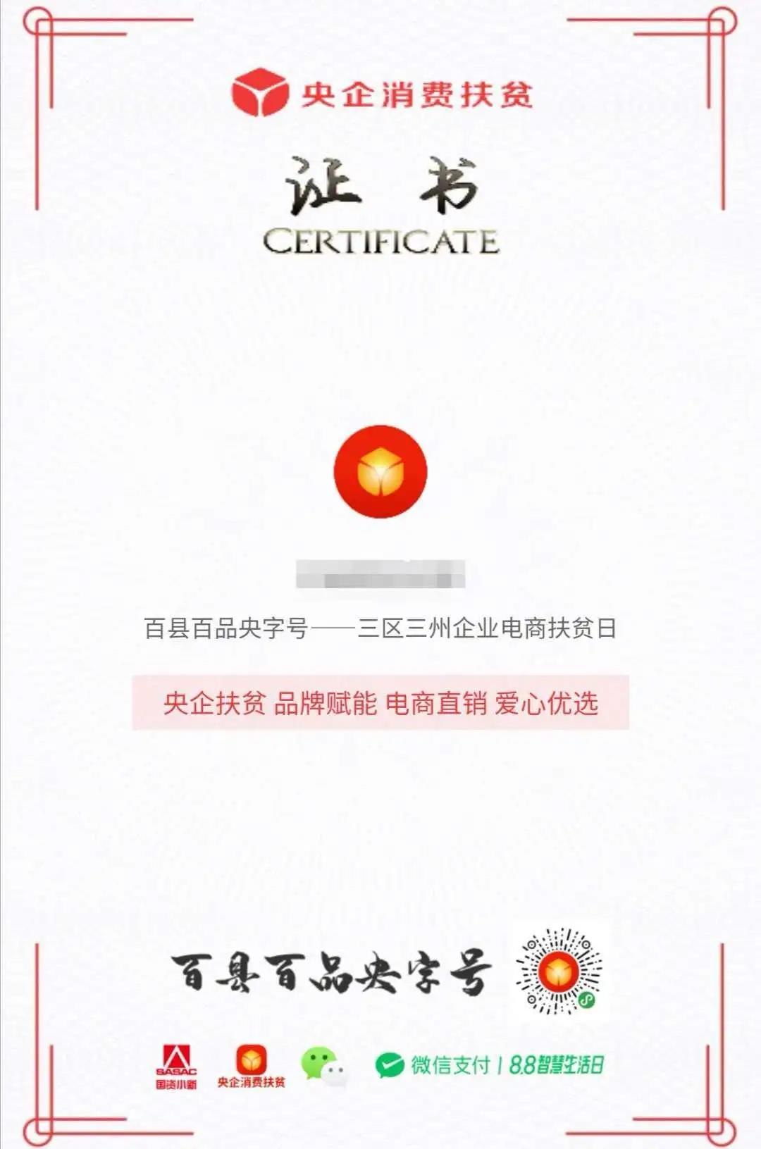 網友在直播間下單后,小程序自動生成“央企消費扶貧電子證書”。
