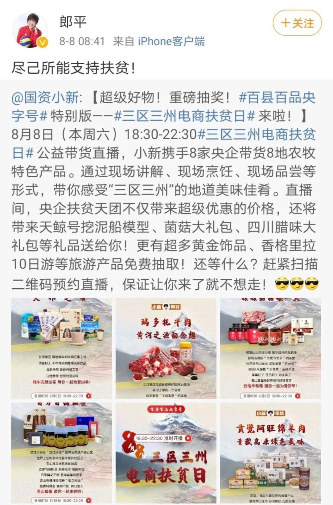 自啟動以來,本(ben)次直播帶貨(huo)便吸引了(le)眾(zhong)多網(wang)(wang)友(you)的(de)關(guan)(guan)注,同時也受到了(le)社會各界愛心人士(shi)的(de)支持(chi)。全國脫貧(pin)攻堅獎獲得者、“人民楷(kai)模”高德(de)榮,“當代(dai)雷鋒”“改革先鋒”郭明義,“時代(dai)楷(kai)模”張(zhang)黎明,“全國道德(de)模范”、中國摩(mo)天大樓鋼構(gou)第(di)一人陸建新,著名演員(yuan)、導(dao)演吳京(jing),中國傳媒大學政府與公(gong)共(gong)事(shi)務學院院長(chang)、中國公(gong)共(gong)關(guan)(guan)系協會副會長(chang)董關(guan)(guan)鵬(peng),央(yang)視特(te)約評論員(yuan)楊禹,北京(jing)電視臺(tai)主持(chi)人春妮(ni)等(deng)8位公(gong)眾(zhong)人物擔任(ren)本(ben)次直播帶貨(huo)的(de)網(wang)(wang)絡公(gong)益代(dai)言人,中國女排(pai)總教(jiao)練(lian)郎平轉發活動相關(guan)(guan)信息,向網(wang)(wang)友(you)推薦“三區(qu)三州”特(te)產好(hao)物,號(hao)召網(wang)(wang)友(you)助農(nong)扶貧(pin)、為(wei)愛下單。