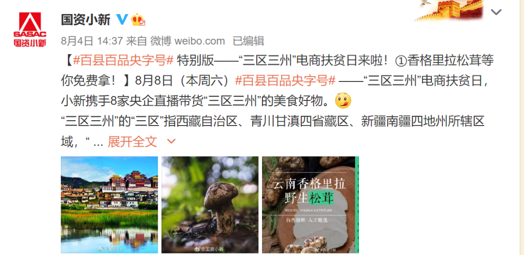 “百(bai)縣百(bai)品央(yang)字號”暨“小新(xin)帶貨”風生水起(qi)的(de)(de)背后,是(shi)國(guo)(guo)(guo)務院國(guo)(guo)(guo)資(zi)委(wei)力(li)(li)推央(yang)企(qi)(qi)(qi)消(xiao)(xiao)費(fei)扶(fu)(fu)(fu)(fu)貧(pin)的(de)(de)堅定決(jue)心和(he)有(you)效(xiao)舉措。今年以來(lai),國(guo)(guo)(guo)務院國(guo)(guo)(guo)資(zi)委(wei)組(zu)織開展中(zhong)央(yang)企(qi)(qi)(qi)業(ye)(ye)消(xiao)(xiao)費(fei)扶(fu)(fu)(fu)(fu)貧(pin)專項行動(dong),著力(li)(li)幫助解(jie)決(jue)貧(pin)困(kun)(kun)地區農(nong)產(chan)品滯銷(xiao)的(de)(de)突出困(kun)(kun)難。5月12日(ri),國(guo)(guo)(guo)務院國(guo)(guo)(guo)資(zi)委(wei)央(yang)企(qi)(qi)(qi)消(xiao)(xiao)費(fei)扶(fu)(fu)(fu)(fu)貧(pin)電(dian)(dian)商(shang)(shang)(shang)平臺(tai)正式上(shang)線(xian),為貧(pin)困(kun)(kun)縣農(nong)產(chan)品提供穩定持(chi)續、輻射面廣的(de)(de)電(dian)(dian)商(shang)(shang)(shang)銷(xiao)售渠道。在“‘三(san)(san)區三(san)(san)州(zhou)’電(dian)(dian)商(shang)(shang)(shang)扶(fu)(fu)(fu)(fu)貧(pin)日(ri)”的(de)(de)直(zhi)播帶貨現場,中(zhong)央(yang)企(qi)(qi)(qi)業(ye)(ye)電(dian)(dian)商(shang)(shang)(shang)聯(lian)盟、中(zhong)央(yang)企(qi)(qi)(qi)業(ye)(ye)媒體聯(lian)盟、騰訊微信面向(xiang)所有(you)中(zhong)國(guo)(guo)(guo)企(qi)(qi)(qi)業(ye)(ye)和(he)社會各界發(fa)(fa)起(qi)《企(qi)(qi)(qi)業(ye)(ye)電(dian)(dian)商(shang)(shang)(shang)扶(fu)(fu)(fu)(fu)貧(pin)“三(san)(san)區三(san)(san)州(zhou)”倡(chang)議書》:充分發(fa)(fa)揮中(zhong)國(guo)(guo)(guo)企(qi)(qi)(qi)業(ye)(ye)的(de)(de)市場主體作(zuo)用(yong),助力(li)(li)“三(san)(san)區三(san)(san)州(zhou)”開展產(chan)業(ye)(ye)扶(fu)(fu)(fu)(fu)貧(pin)、增加有(you)效(xiao)供給,培(pei)育內(nei)生動(dong)力(li)(li),推進可持(chi)續發(fa)(fa)展;充分發(fa)(fa)揮電(dian)(dian)商(shang)(shang)(shang)平臺(tai)的(de)(de)引領帶動(dong)作(zuo)用(yong),助力(li)(li)“三(san)(san)區三(san)(san)州(zhou)”開拓線(xian)上(shang)渠道、培(pei)訓電(dian)(dian)商(shang)(shang)(shang)人才,產(chan)銷(xiao)結(jie)合、以銷(xiao)促(cu)產(chan),讓(rang)特色產(chan)品對(dui)接更大線(xian)上(shang)市場,讓(rang)電(dian)(dian)商(shang)(shang)(shang)扶(fu)(fu)(fu)(fu)貧(pin)惠(hui)及更多貧(pin)困(kun)(kun)群(qun)眾。