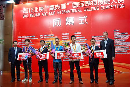 按照賽程安排,經過(guo)3天(tian)的(de)激烈的(de)角逐,中(zhong)(zhong)國(guo)石(shi)油天(tian)然(ran)氣集(ji)(ji)團(tuan)(tuan)公(gong)司(si)侯立民、中(zhong)(zhong)國(guo)船(chuan)舶工(gong)(gong)業集(ji)(ji)團(tuan)(tuan)公(gong)司(si)陳宜峰、中(zhong)(zhong)國(guo)能源建設集(ji)(ji)團(tuan)(tuan)有限公(gong)司(si)劉仔才、中(zhong)(zhong)國(guo)石(shi)油天(tian)然(ran)氣集(ji)(ji)團(tuan)(tuan)公(gong)司(si)馬興(xing)國(guo)、中(zhong)(zhong)國(guo)南車集(ji)(ji)團(tuan)(tuan)公(gong)司(si)朱獻(xian)分(fen)別(bie)獲(huo)得(de)手工(gong)(gong)焊(han)(han)條電弧(hu)焊(han)(han)、MIG&MAG焊(han)(han)、鎢(wu)極氬弧(hu)焊(han)(han)、氧—乙炔氣焊(han)(han)、機器人焊(han)(han)項(xiang)目第1名。根據(ju)《中(zhong)(zhong)央企業職工(gong)(gong)技(ji)能競賽管理辦法(fa)》和大(da)賽文件規(gui)定,各項(xiang)比賽前3名的(de)中(zhong)(zhong)央企業選手,由國(guo)資委(wei)授予中(zhong)(zhong)央企業技(ji)術能手稱號。