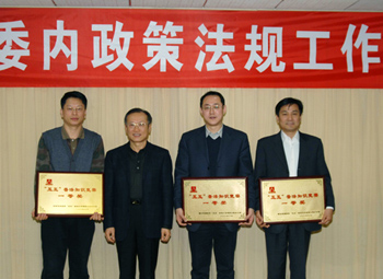 會議還對委機關“五五”普法知識競賽活動進行了總結,對獲獎單位進行了表彰。黃淑和副主任向獲獎廳局頒發了獎牌。2008年4月份開始,委普法辦在委機關組織開展了“五五”普法知識競賽活動,21個廳局全部參加競賽,18個廳局實現了廳局級領導干部和在編人員100%參賽。按照競賽評分辦法,監事會局、群工局、法規局獲得一等獎;綜合局、產權局、企干二局、宣傳局、人事局、管理局、紀委獲得二等獎;辦公廳、評價局、規劃局、改革局、改組局、分配局、企干一局、黨建局、研究局、外事局、機關黨委獲得三等獎。