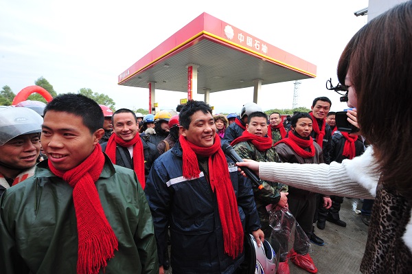 從(cong)2013年起(qi),中(zhong)國石(shi)化“情暖驛站”活動累(lei)計為“返鄉摩騎(qi)”免(mian)費加(jia)油50000人次,服務返鄉車主超過2000萬人次,活動得到社會(hui)及媒體(ti)的高度關注,百萬網友為活動點贊。