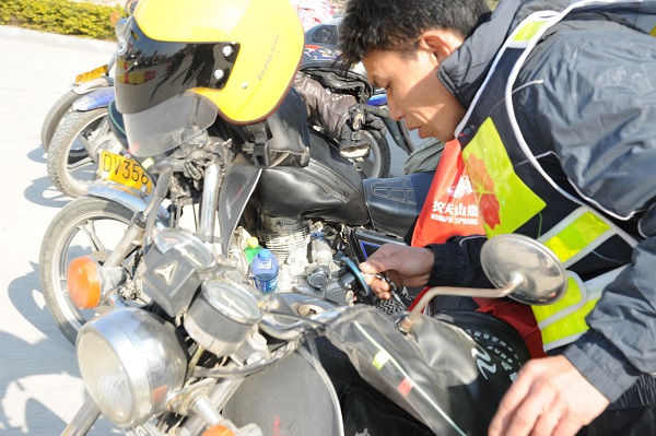 2月1日凌晨不(bu)到5點(dian),劉(liu)水沅就(jiu)來(lai)到中國(guo)石油(you)荊山加油(you)站,今天他將在(zai)中國(guo)石油(you)的幫助下騎(qi)(qi)摩托(tuo)車(che)返回(hui)江西老家。已經說不(bu)清這是(shi)第幾次(ci)鐵騎(qi)(qi)返鄉(xiang)了(le),自(zi)2002年(nian)起劉(liu)水沅就(jiu)在(zai)福建(jian)廈門、泉州一(yi)帶打工。那(nei)時他就(jiu)買(mai)了(le)摩托(tuo)車(che),每(mei)年(nian)往返全靠騎(qi)(qi)行,有時一(yi)年(nian)跑四(si)五趟,最多(duo)一(yi)年(nian)跑了(le)8趟,十幾年(nian)來(lai)騎(qi)(qi)壞了(le)三輛車(che)。“現在(zai)閉著眼睛(jing)都能騎(qi)(qi)回(hui)去”他說。