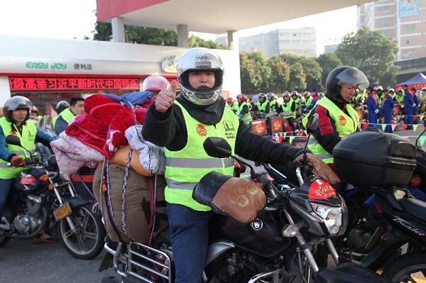 今年,幫(bang)助(zhu)時間再次大幅延長,不僅從(cong)2月(yue)6日(臘月(yue)二(er)十一)至2月(yue)15日(除夕),鐵(tie)騎(qi)(qi)返鄉(xiang)可以獲得各項幫(bang)助(zhu)。春(chun)節過后(hou),在3月(yue)16日(正月(yue)二(er)十九)之前,返回福建務(wu)工(gong)的鐵(tie)騎(qi)(qi)們,還能在福建境內中國石油(you)加油(you)站獲得免費加油(you)幫(bang)助(zhu)。