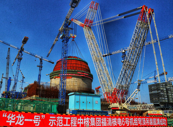 3月21日上午9時21分,華龍(long)(long)(long)一(yi)號(hao)示范工程——中核集團(tuan)福清(qing)6號(hao)機(ji)(ji)組提(ti)前(qian)10天(tian)實現穹頂(ding)吊裝(zhuang)(zhuang)。這是(shi)繼華龍(long)(long)(long)一(yi)號(hao)全(quan)球(qiu)首堆(dui)福清(qing)5號(hao)機(ji)(ji)組和海外首堆(dui)巴基斯坦卡拉奇2號(hao)機(ji)(ji)組實現穹頂(ding)吊裝(zhuang)(zhuang)后(hou),全(quan)球(qiu)第三臺、國內(nei)第二臺全(quan)面(mian)進入(ru)設(she)備(bei)安裝(zhuang)(zhuang)階段的(de)華龍(long)(long)(long)一(yi)號(hao)核電機(ji)(ji)組,這將在全(quan)世界(jie)進一(yi)步點亮華龍(long)(long)(long)一(yi)號(hao)這一(yi)國家名片,增強了“一(yi)帶(dai)一(yi)路”沿(yan)線國家對華龍(long)(long)(long)一(yi)號(hao)的(de)信心。