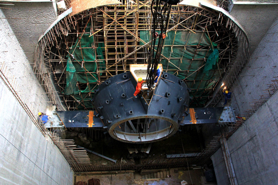 中鐵(tie)二十局建(jian)設者吊裝發電機組(zu)管(guan)型座(zuo)內環
