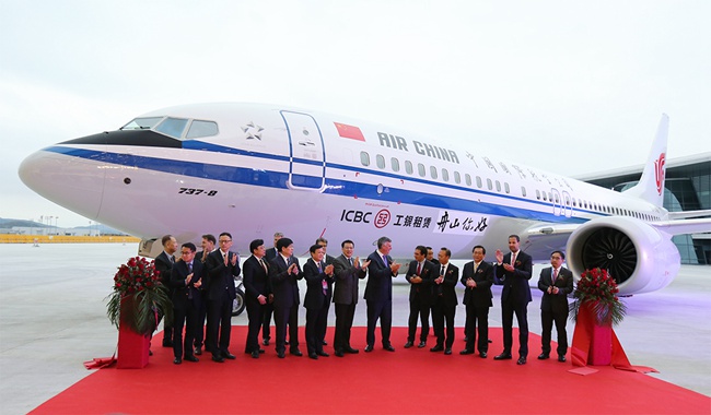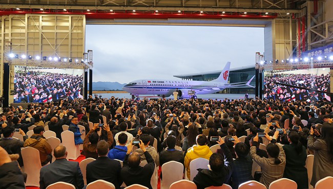 2018年12月15日,中(zhong)(zhong)國(guo)商飛(fei)公司與美國(guo)波音公司在舟山共同(tong)合(he)資的(de)737完工和交(jiao)付中(zhong)(zhong)心(xin)交(jiao)付首架飛(fei)機(ji),飛(fei)機(ji)由中(zhong)(zhong)國(guo)國(guo)際航空公司接收。