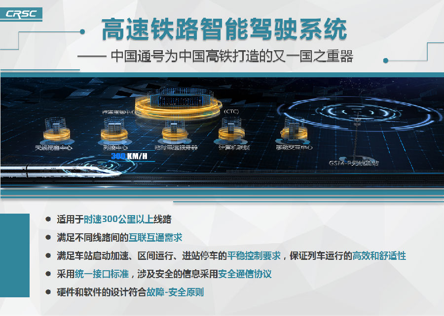 中(zhong)國(guo)通(tong)(tong)號于2007年開始自(zi)動(dong)駕(jia)駛裝(zhuang)備(bei)的自(zi)主(zhu)研(yan)發工作(zuo),歷(li)時十年研(yan)發,2016年,在廣(guang)東莞惠(hui)城(cheng)際成功(gong)實現時速200公里城(cheng)際鐵路(lu)(lu)(lu)自(zi)動(dong)駕(jia)駛技(ji)(ji)(ji)術應(ying)(ying)用。2017年9月,鐵路(lu)(lu)(lu)總(zong)公司立項(xiang)科研(yan)重大(da)課(ke)題《高鐵列(lie)車(che)自(zi)動(dong)駕(jia)駛關(guan)鍵技(ji)(ji)(ji)術研(yan)究及京(jing)張高鐵示范應(ying)(ying)用》,由中(zhong)國(guo)通(tong)(tong)號牽頭編制(zhi)高速鐵路(lu)(lu)(lu)自(zi)動(dong)駕(jia)駛系統(tong)總(zong)體技(ji)(ji)(ji)術方案及相(xiang)關(guan)設備(bei)接口規范。2018年2月通(tong)(tong)過(guo)鐵總(zong)方案評(ping)審,2018年6月通(tong)(tong)過(guo)試驗(yan)評(ping)審。2018年6月至9月,高鐵自(zi)動(dong)駕(jia)駛系統(tong)全(quan)套(tao)裝(zhuang)備(bei)(自(zi)動(dong)駕(jia)駛車(che)載設備(bei)ATO、車(che)載超速防護設備(bei)ATP、臨時限速服務器TSRS和(he)列(lie)控中(zhong)心(xin)TCC)在京(jing)沈客專(zhuan)綜合試驗(yan)段(duan)進行(xing)現場試驗(yan),測試項(xiang)目全(quan)部通(tong)(tong)過(guo)。京(jing)沈現場試驗(yan)期間,中(zhong)國(guo)通(tong)(tong)號C3+ATO系統(tong)持(chi)續穩(wen)定(ding)運行(xing),以近乎零(ling)缺(que)陷(xian)的高水平順利(li)通(tong)(tong)過(guo)專(zhuan)家組數百項(xiang)細致苛刻的測試,諸多(duo)優勢獲專(zhuan)家肯定(ding)。