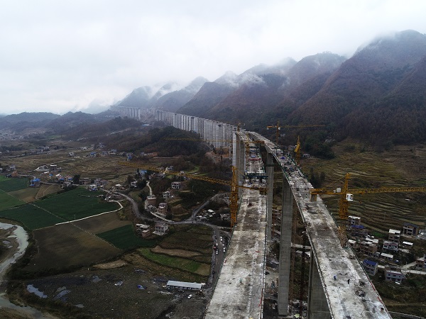 2019年(nian)1月5日,由(you)中國五礦集團有(you)限公(gong)司所(suo)屬中冶貴州(zhou)承建的貴州(zhou)省紫云縣紫望高(gao)(gao)速公(gong)路火花特(te)大橋(qiao)主橋(qiao)最(zui)后一跨120米(mi)連續(xu)剛構梁(liang)順(shun)利(li)合龍,標志(zhi)著貴州(zhou)省最(zui)長(chang)、高(gao)(gao)墩最(zui)多的高(gao)(gao)速公(gong)路特(te)大橋(qiao)施工取得決定性勝利(li)。