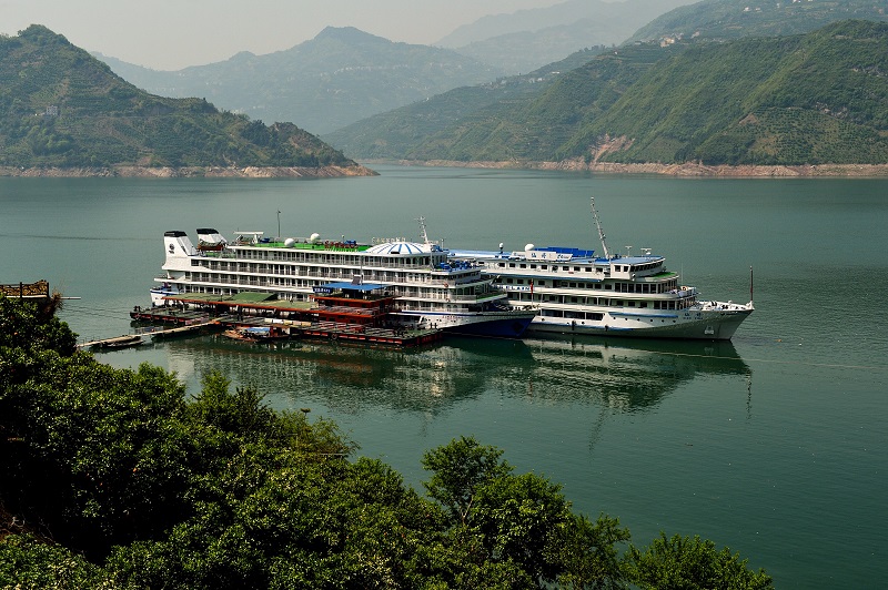 如今,在三峽核心區,所有游輪已全部用(yong)上清潔(jie)岸電。圖為一艘游輪停靠湖(hu)北秭歸縣(xian)歸州鎮港口碼頭。