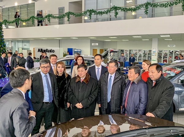 圖為中國通用技術集團負責人一行參觀ALLUR集團位于阿斯塔納的汽車4S店。