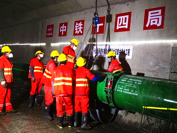 在有限施(shi)工(gong)空間內,建(jian)設(she)者(zhe)要(yao)運(yun)(yun)進(jin)單節長9米(mi)(mi)、直徑0.8米(mi)(mi)、重(zhong)達3噸多的管(guan)道。為(wei)了確(que)保運(yun)(yun)輸安(an)全,項目部技術人員加工(gong)改良(liang)了平板(ban)車,借助洞室內預留(liu)的鋼筋(jin)吊環,將管(guan)道運(yun)(yun)送至預定位置。管(guan)廊最大坡度高達15%,從起點到(dao)標尾垂直提(ti)升達550米(mi)(mi),落差超(chao)過(guo)百層樓高,安(an)裝(zhuang)誤差卻不能超(chao)過(guo)2毫米(mi)(mi),按照常規方(fang)法施(shi)工(gong)根本無法滿(man)足(zu)要(yao)求(qiu)。最終他們決(jue)定對管(guan)徑位置和高度分段(duan)進(jin)行檢測(ce),檢測(ce)一(yi)段(duan)安(an)裝(zhuang)一(yi)段(duan),同時使用管(guan)道定位儀(yi)及臨時支墩(dun)等,防止(zhi)管(guan)道發(fa)生偏移,確(que)保管(guan)道精準(zhun)對接。