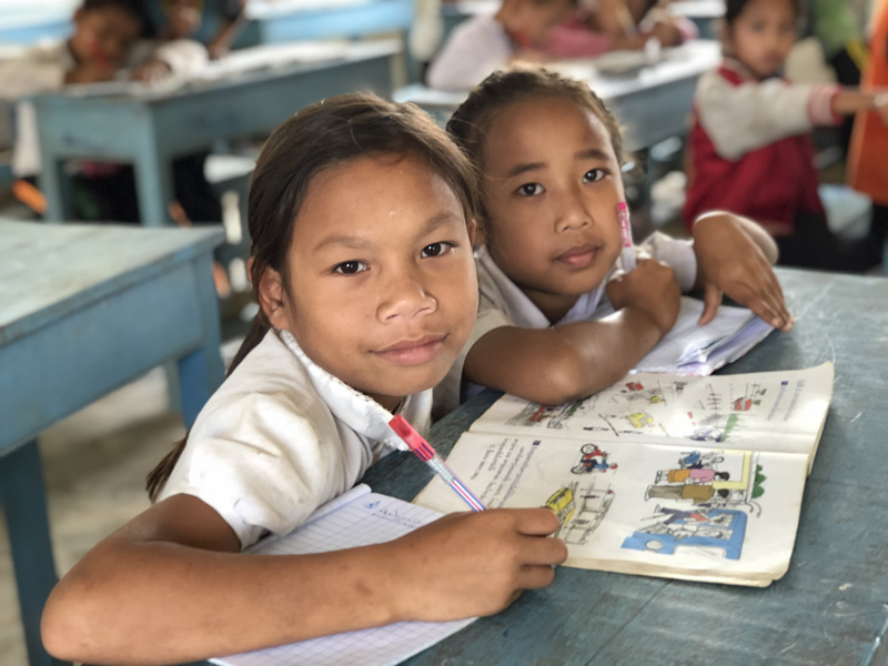 老撾南塔河移民安置點學校里的小學生。林丹丹 攝
