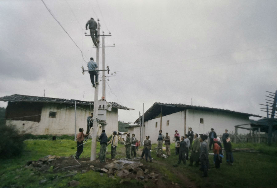 我(wo)記得電(dian)桿(gan)(gan)用的(de)木料都是(shi)從山上用牦牛拉回來(lai)(lai)的(de)。聽(ting)技(ji)術員說安裝好,就(jiu)有(you)電(dian)用,晚上也能跟白(bai)天(tian)一樣(yang)亮(liang)晃晃的(de),我(wo)們(men)那個激動啊,沒(mei)日沒(mei)夜地挖(wa)洞、拉桿(gan)(gan),用了(le)六(liu)天(tian)時(shi)間(jian)就(jiu)把變壓器架起來(lai)(lai)了(le)。