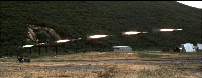 該(gai)試驗采(cai)用高低內外軌(gui)(gui)的(de)(de)導軌(gui)(gui)式發(fa)(fa)射(she)方法,雙軌(gui)(gui)設(she)計(ji)保(bao)證了彈體在離(li)軌(gui)(gui)瞬間的(de)(de)穩定(ding)性,進而(er)保(bao)證彈道(dao)飛行的(de)(de)穩定(ding)性。此外,采(cai)用后噴(pen)發(fa)(fa)動(dong)機(ji)設(she)計(ji),對飛行平臺(tai)微(wei)后坐力,可保(bao)證無人機(ji)的(de)(de)安全。