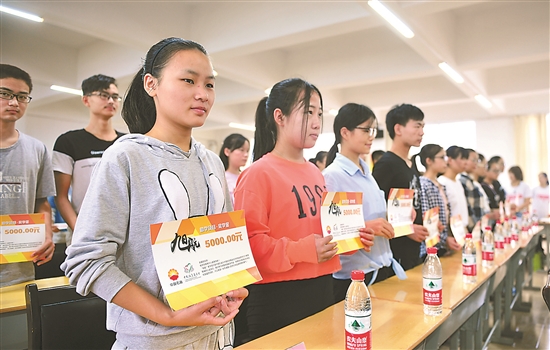 圖為助學項目為考入一本院校的旭航學子發放獎學金。邊蕾攝