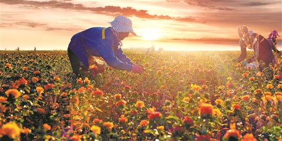 圖為當地婦女就近在紅花產業園就業,增加家庭收入。張曉玲攝