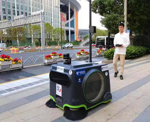 中國電信的5G掃地僧,自動避讓參觀人流,讓進博會場館更干凈