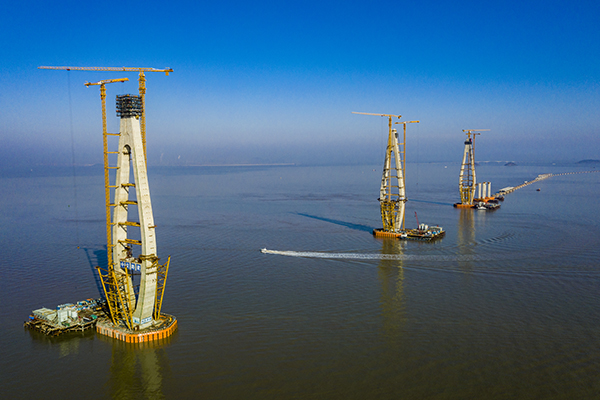 近日,中交集團承建的滬舟甬跨海通道舟岱跨海大橋主(zhu)通航(hang)孔橋主(zhu)塔封頂。