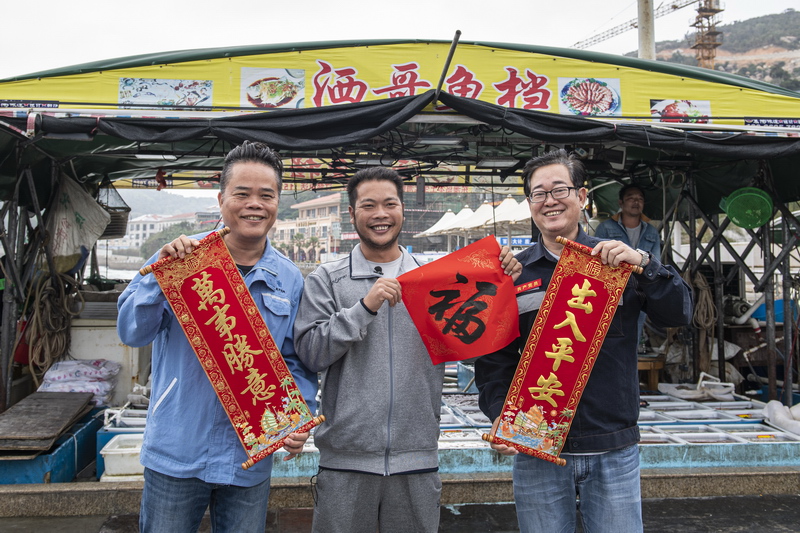 得知春節前電價實現了同網同價,以漁業為生的當地百姓,開心地與供電人員一起憧憬未來。