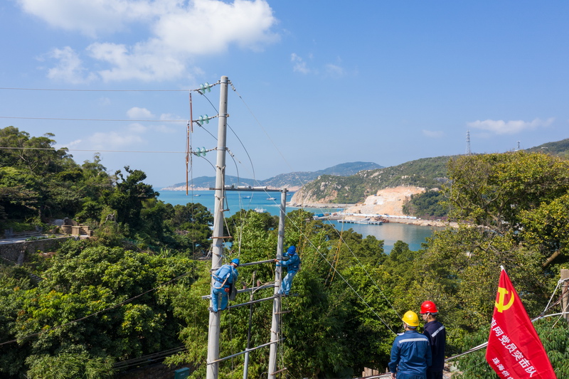南方電網廣東珠海供電局運維人員對大萬山島上的供電線路進行升級改造。