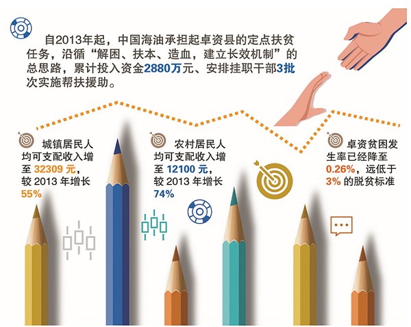 3月4日,經內(nei)蒙(meng)古自治區人民政府批準,中(zhong)國海油(you)(you)對(dui)口(kou)幫扶(fu)地內(nei)蒙(meng)古卓(zhuo)資縣(xian)正式(shi)退出貧困(kun)縣(xian)序列。至此,中(zhong)國海油(you)(you)對(dui)口(kou)幫扶(fu)的(de)6個縣(xian)市全部(bu)脫貧摘帽。