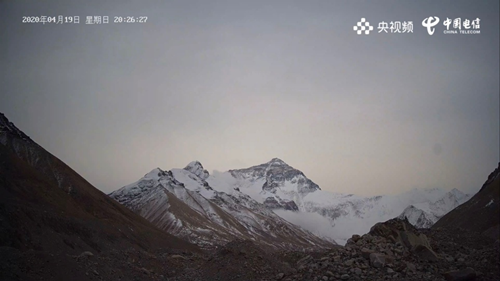 4月14日18點30分(fen),中(zhong)國(guo)電(dian)信(xin)(xin)完(wan)成(cheng)了(le)5G看珠峰的3臺攝(she)(she)(she)像機的安裝調試(shi)工作(zuo)。中(zhong)國(guo)電(dian)信(xin)(xin)網(wang)絡建設人員將2路高(gao)清攝(she)(she)(she)像頭架設在(zai)海(hai)拔5300米的一號營地分(fen)別拍攝(she)(she)(she)珠穆(mu)朗瑪(ma)峰,珠峰大本營畫面(mian)VR攝(she)(she)(she)像頭部署(shu)在(zai)海(hai)拔5000米的絨(rong)布寺(si)附近。3個點位的高(gao)清視頻全部基(ji)于中(zhong)國(guo)電(dian)信(xin)(xin)在(zai)海(hai)拔5300米建設的5G網(wang)絡完(wan)成(cheng)信(xin)(xin)號回(hui)傳。