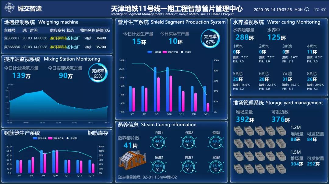 這還只(zhi)是“智(zhi)慧(hui)工(gong)廠”的冰(bing)山一(yi)角。在車(che)間內有一(yi)處全透(tou)明化智(zhi)慧(hui)管片系統管理(li)中(zhong)心(xin),巨大(da)的電(dian)子屏(ping)展(zhan)示(shi)了(le)各(ge)個工(gong)段的生產數(shu)據(ju),現場(chang)人員、安全、設備等動態數(shu)據(ju)清晰(xi)可見。