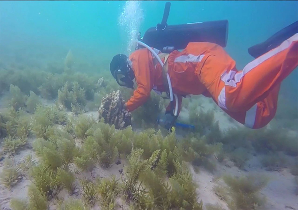 哈電集團迪拜哈斯彥項目現場人員正在進行珊瑚移植作業。