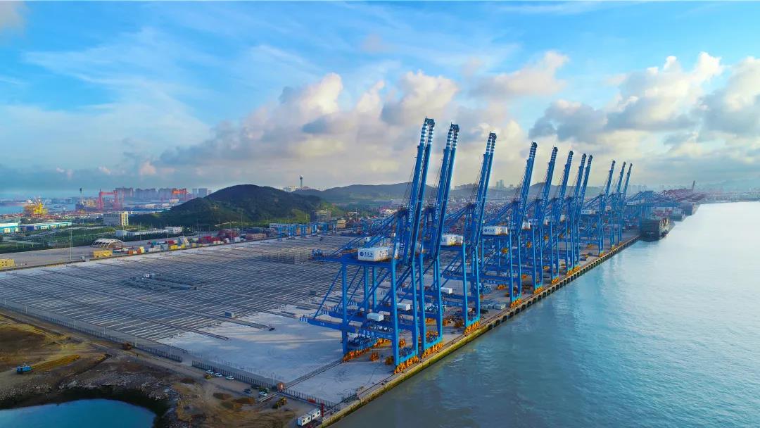 近日,中交一航局承(cheng)建的(de)青島港前灣港區迪拜環(huan)球碼頭(tou)工程(二期)順(shun)利通過竣工驗收,標志著世界自動化裝(zhuang)(zhuang)卸效率最高(gao)的(de)集裝(zhuang)(zhuang)箱碼頭(tou)正式投(tou)產使用。