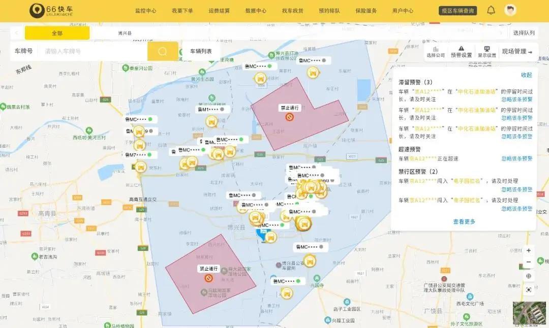 實時查看所有在庫區/工廠電子圍欄內的車輛位置并對車輛違規操作實時預警
