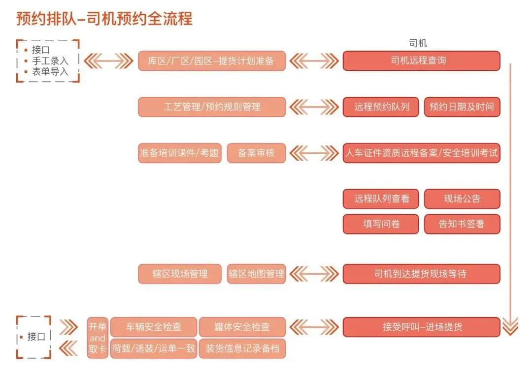 通過“車(che)輛預約排隊系統”,工廠/庫(ku)區可(ke)根據自己業務和生產(chan)情況,自主開放預約裝卸(xie)貨的時間(jian)段;司機可(ke)提前查詢裝卸(xie)貨計(ji)劃預約裝卸(xie)貨時間(jian),有效化解司機無計(ji)劃、無秩序涌向園區、庫(ku)區所帶來的車(che)輛積壓安全隱患(huan)。