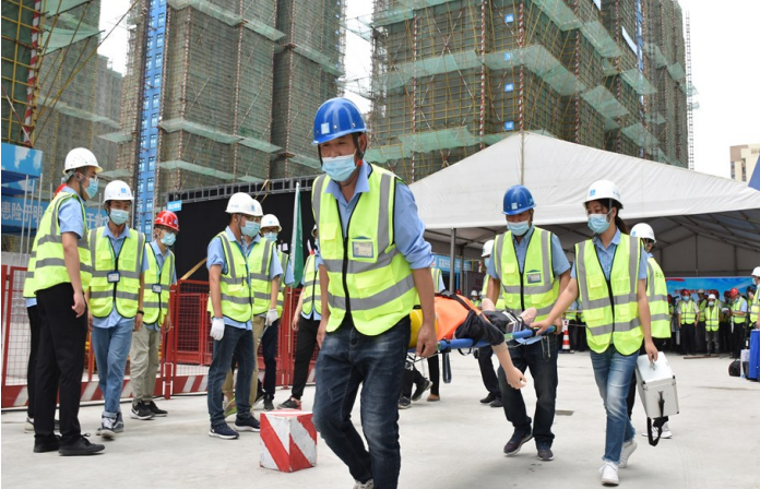 中建六局以“防風險、除隱患、遏事故”為主題,在合肥新站高新區合郢花園項目舉行建筑工地支架坍塌事故處置應急演練,以增強企業安全防范意識和應急處置能力。
