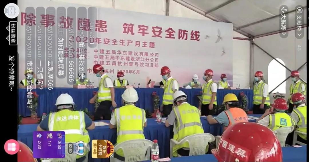 中建五局華東公司安全員化身“網絡主播”,通過直播平臺,場外觀眾與現場人員一同參觀項目安全標準化防護展示區、BIM應用展示區等兩大展區12個觀摩點。
