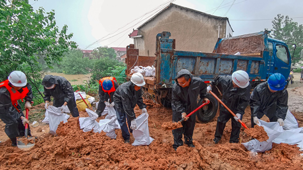 7月8日,合九鐵(tie)路(lu)跨(kua)黃梅縣黃梅大道(dao)出現塌(ta)方(fang),中(zhong)鐵(tie)十一(yi)局(ju)集(ji)團、中(zhong)鐵(tie)十二局(ju)集(ji)團派(pai)出150余人的(de)(de)應急搶險(xian)突擊隊,經(jing)過5小(xiao)時搶險(xian)化險(xian)為夷;黃岡市蘄春縣管(guan)窯鎮竹林墩村受持(chi)續強降雨影響,山(shan)洪(hong)(hong)暴發未(wei)經(jing)河(he)堤(di)(di)沖向村內。中(zhong)國鐵(tie)建大橋(qiao)局(ju)集(ji)團棋盤洲長(chang)江公路(lu)大橋(qiao)項目部組(zu)成(cheng)近90人的(de)(de)抗洪(hong)(hong)搶險(xian)分隊,將村民撤(che)離到(dao)安全(quan)地點并修(xiu)筑防洪(hong)(hong)堤(di)(di)壩,成(cheng)功將防洪(hong)(hong)土袋堆碼到(dao)位(wei),攔截了沖進村內和農田的(de)(de)水流。